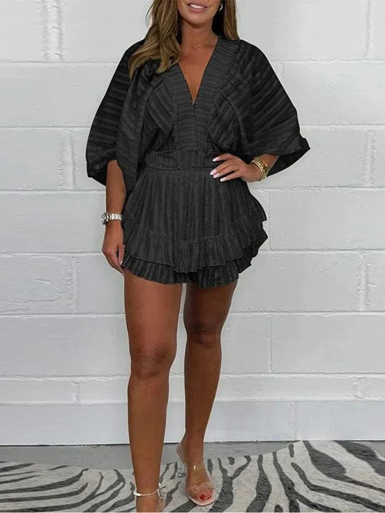 Women V-neck Top+ Splicing Half Skirt Casual Set