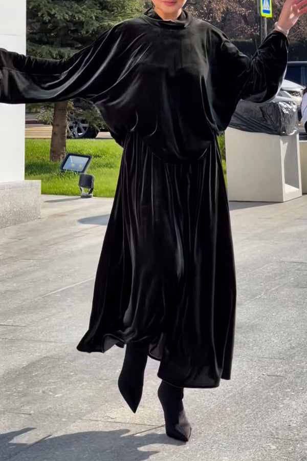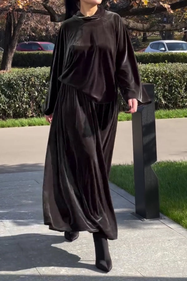 Women Casual Velvet Turtleneck Loose Top + Skirt Suit