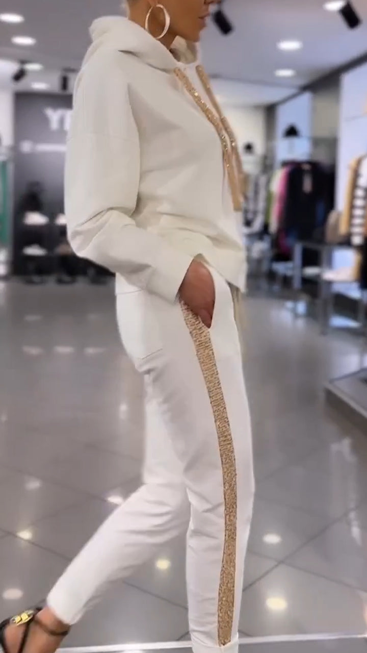Women Hooded Drawstring Sweatshirt + Pants Casual Suit