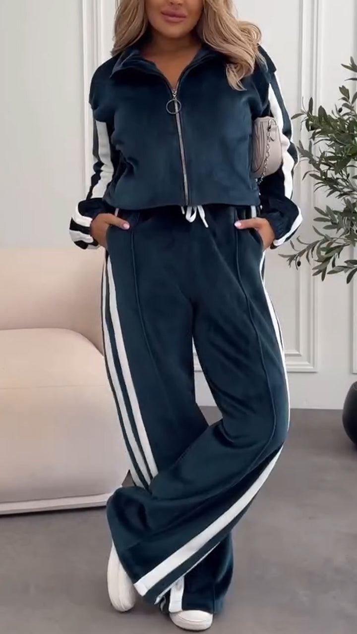Women Lapel Vertical Striped Jacket + Pants Casual Suit