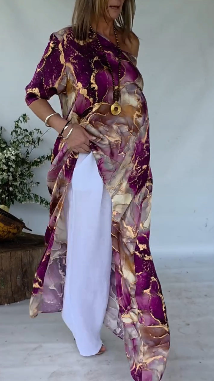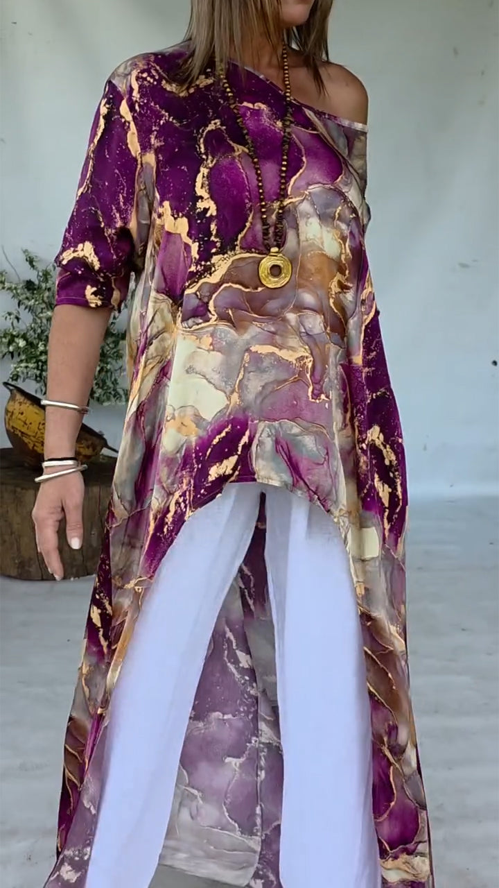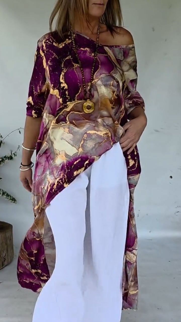 Women Round Neck Printed Irregular Casual Top
