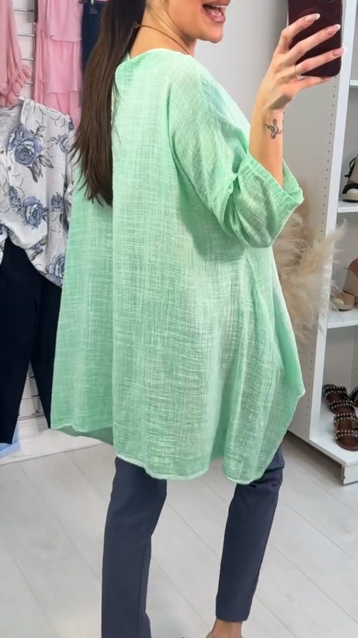 Women Laple Collar Denim Patchwork Sweater Casual Top