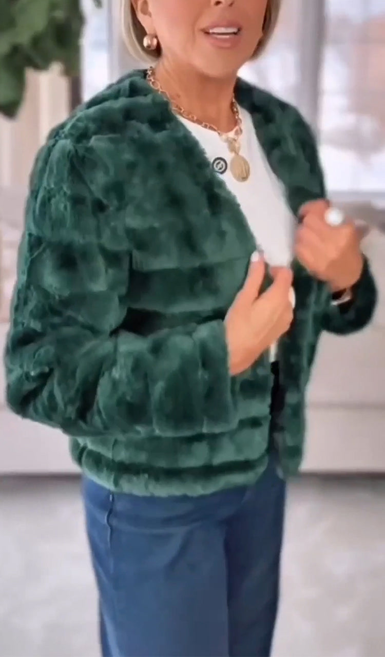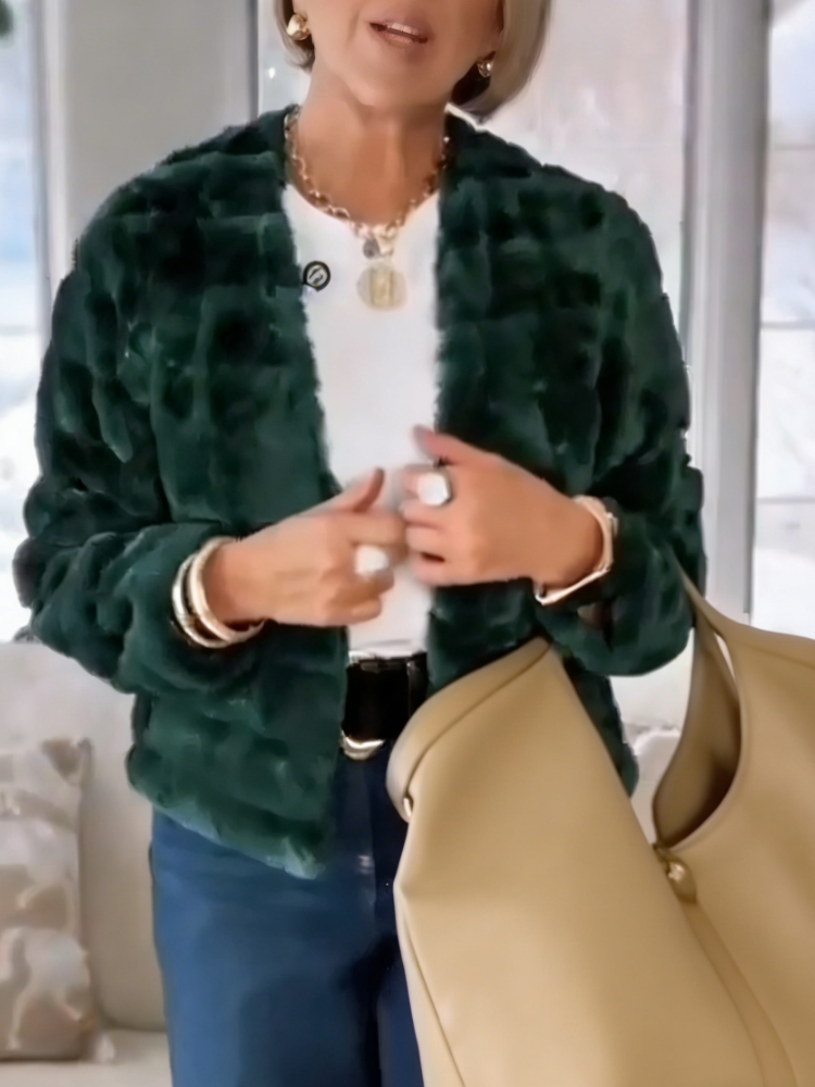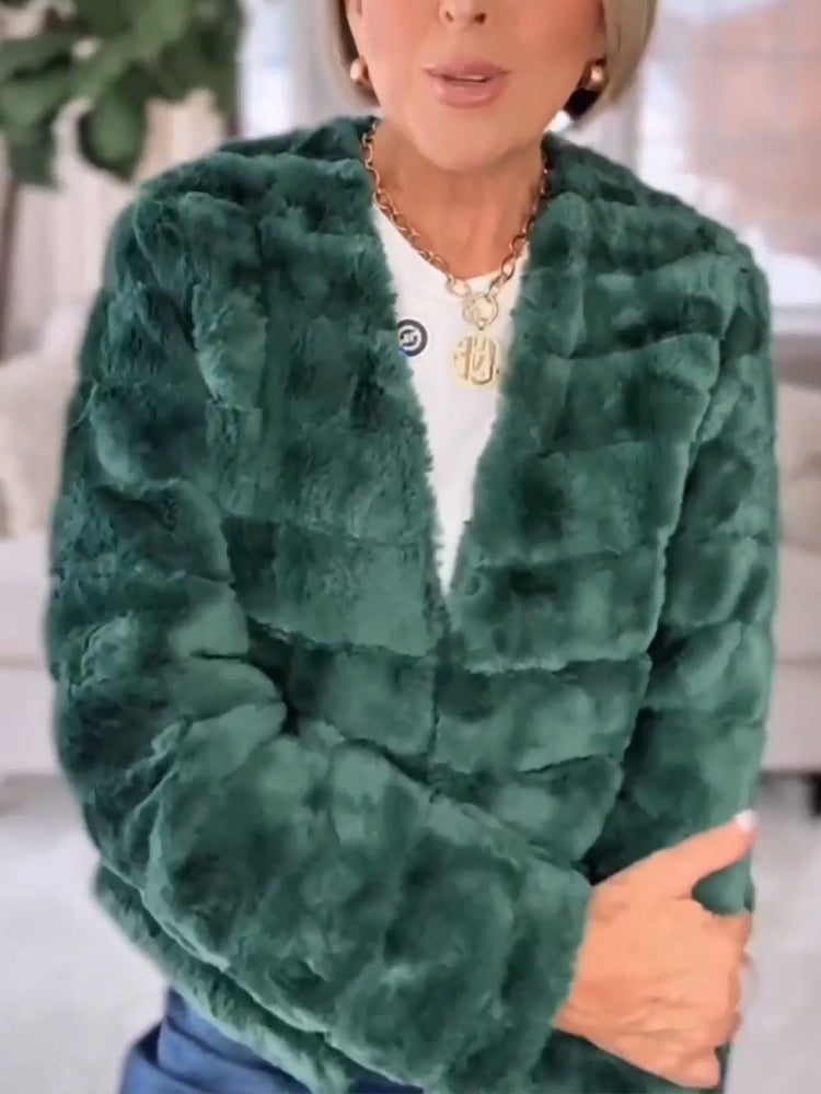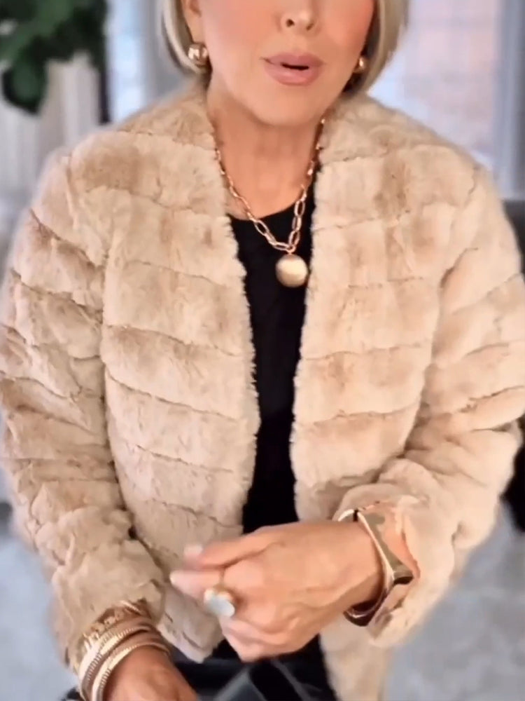 Women's Lapel Button Knitted Sleeve Casual Coat with Two Side Pockets