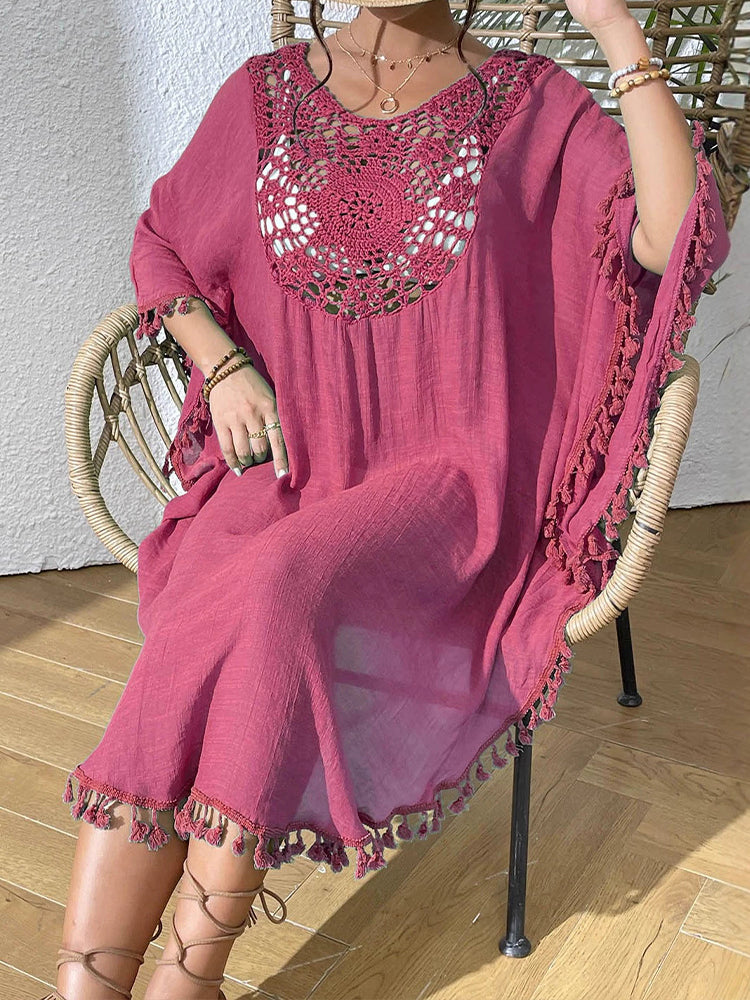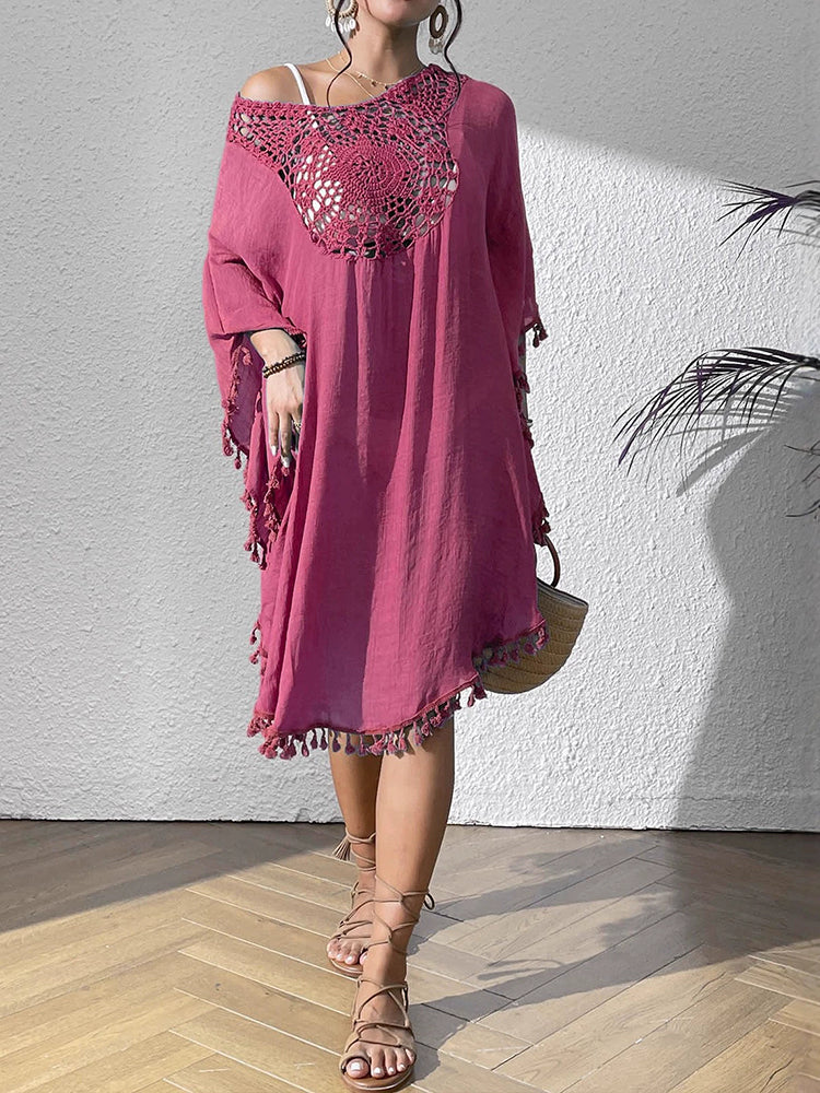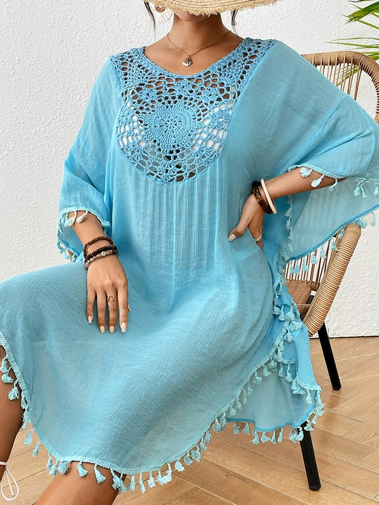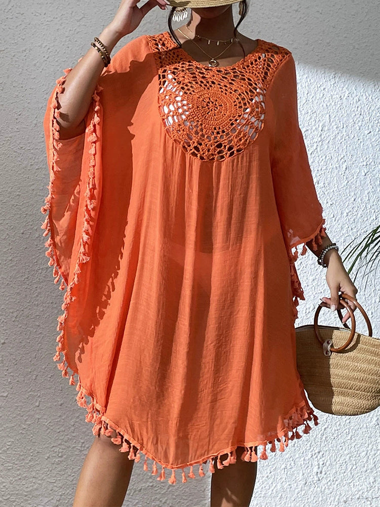 Women Beach Crocheted Patchwork Tassel Swimsuit Bikini Outerwear