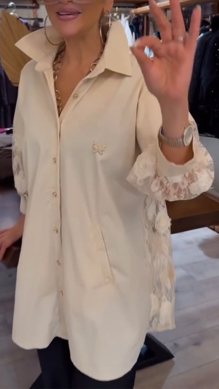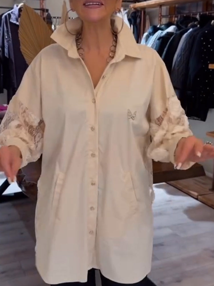 Women Collar Patchwork Casual Shirt