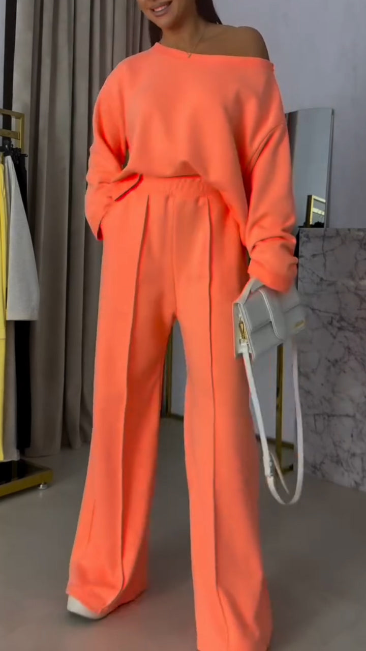 Women Round Neck Solid Color Casual Suit
