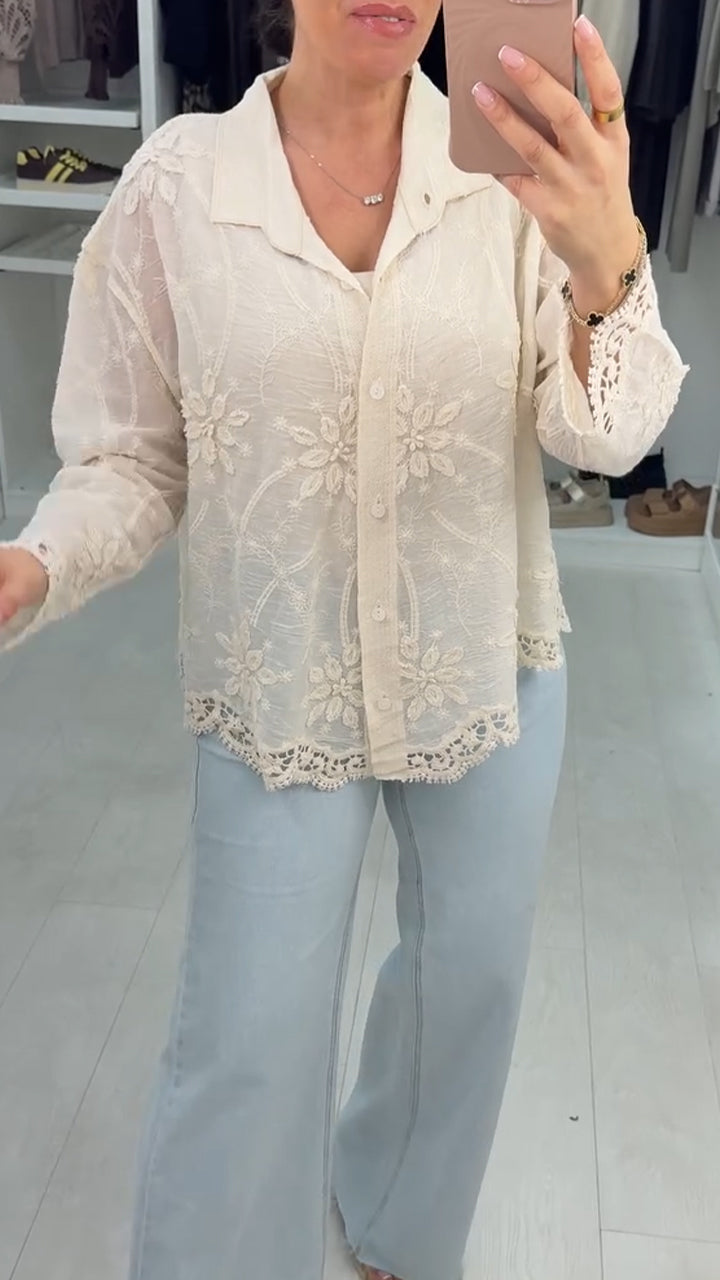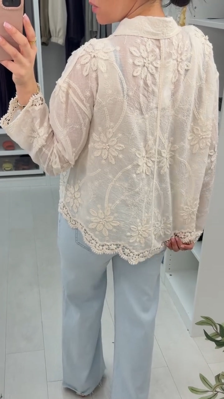Womens Collar Patchwork Crochet Casual Shirt
