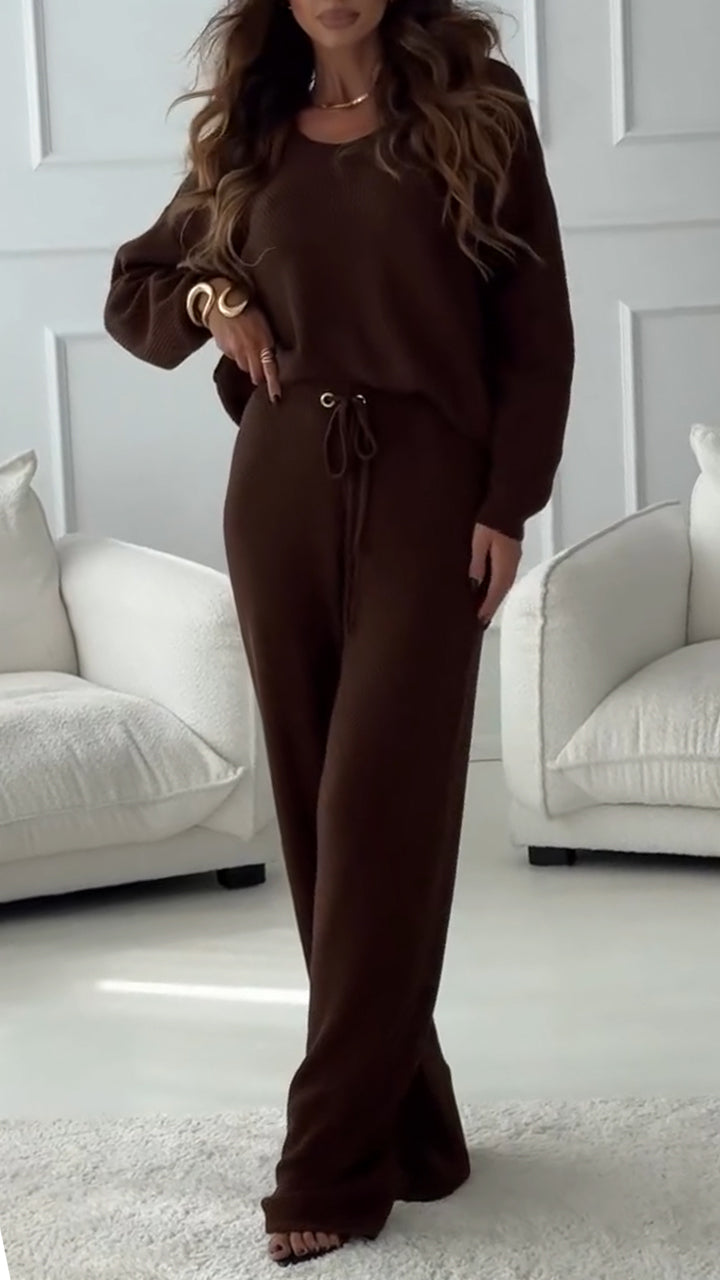 Women Round Neck Top + Drawstring Pants Casual Suit
