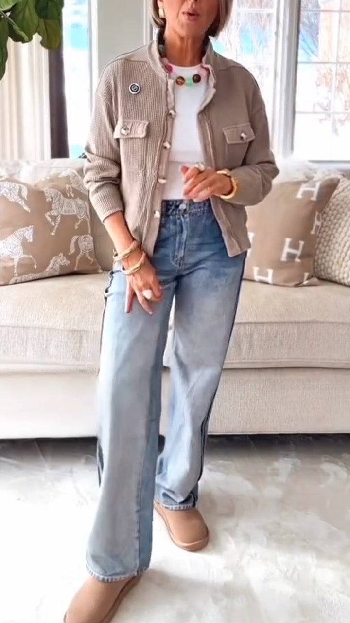 Women Patchwork Jacket+ Vertical Jeans Casual Suit