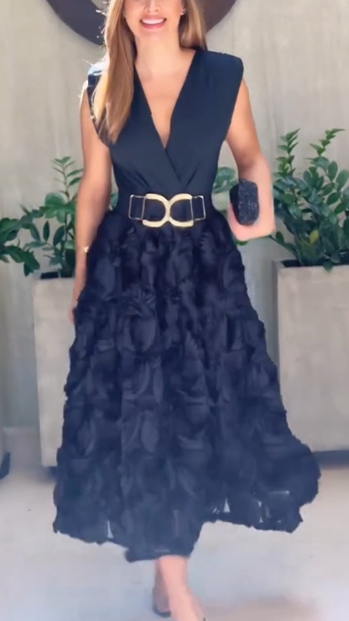 Women Patchwork Three-dimensional Rose Pattern Elegant Temperament Dress