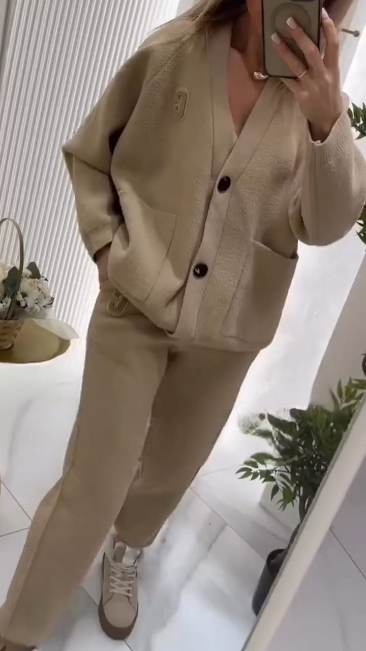 Women's Lapel Button Knitted Sleeve Casual Coat with Two Side Pockets