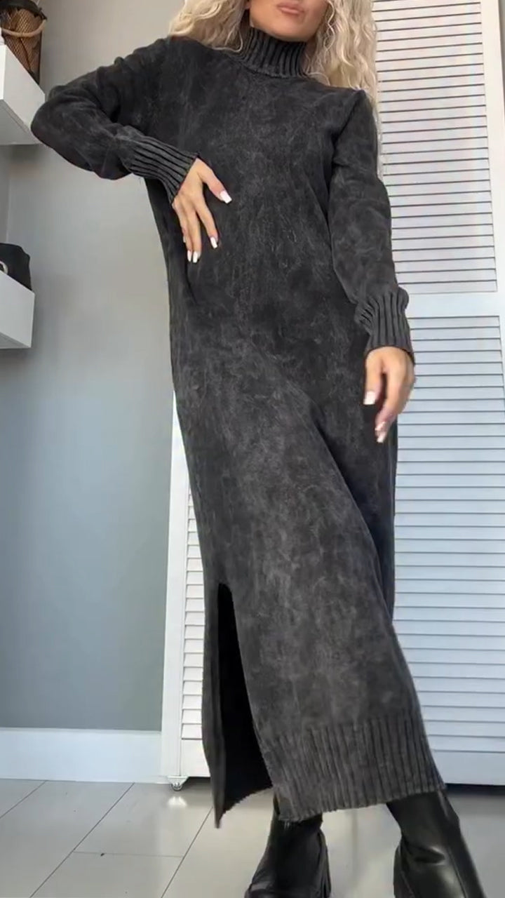 Women High-neck Spliced knitted Side Slit Casual Dress