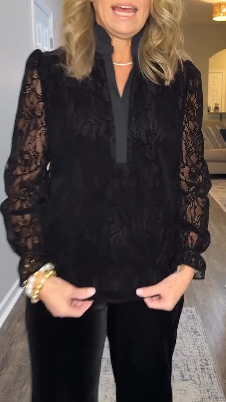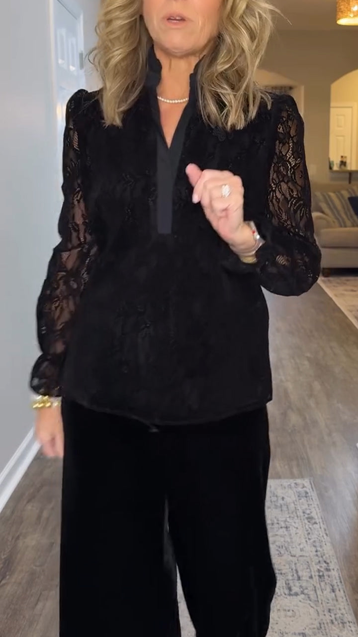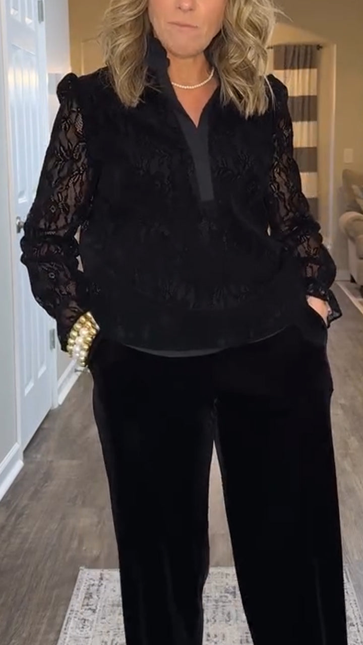 Women Round Neck Patchwork Lace Casual Top