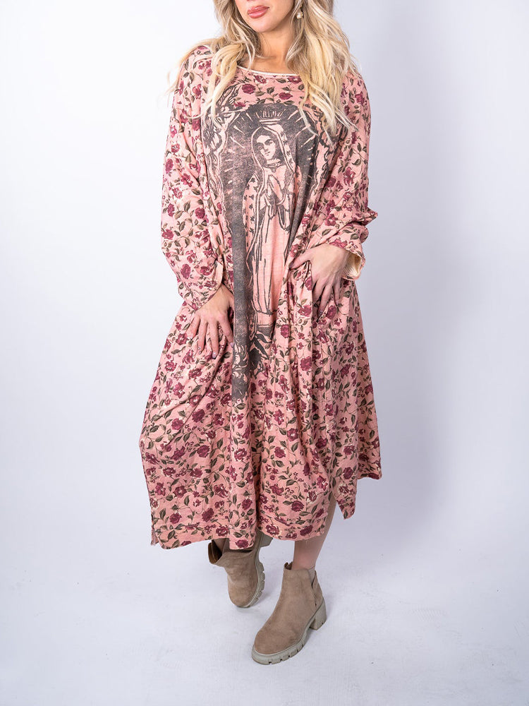 Women Square Collar Pattern Hollowed Out Elegant Casual Dress