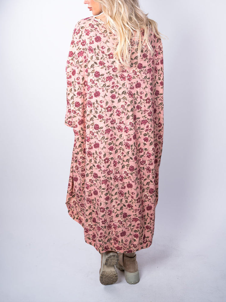 Women V-neck Patchwork Pattern Hollow Out Casual Dress