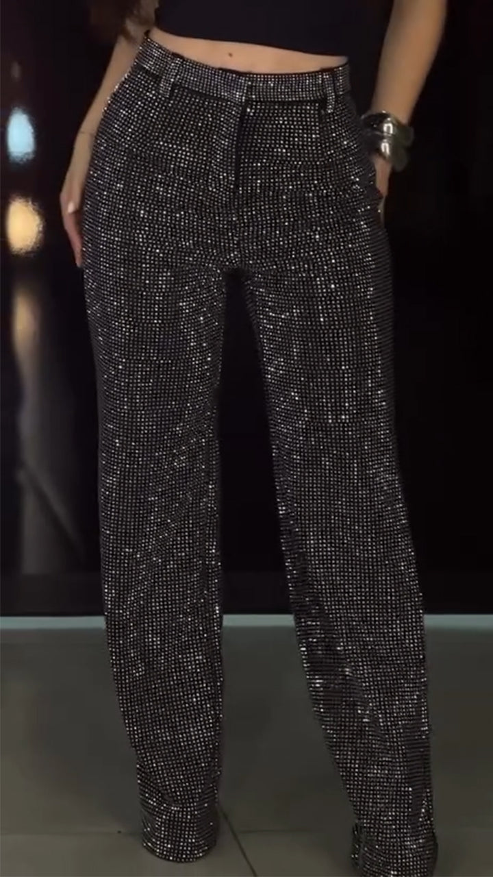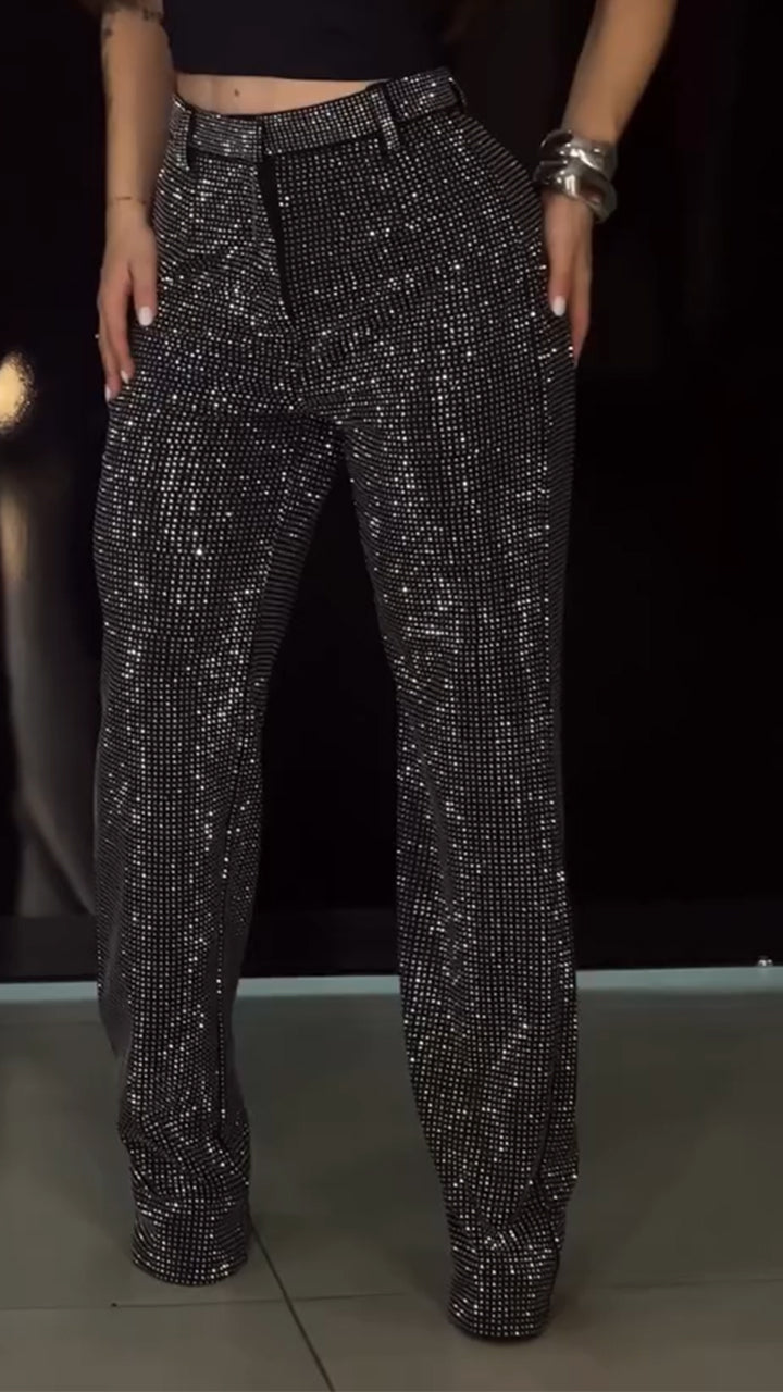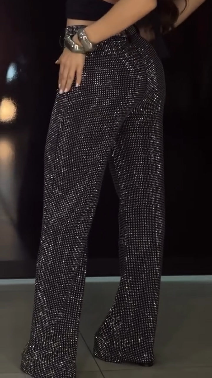 Women's Rhinestone Washed Wide-Leg Jeans with Belt
