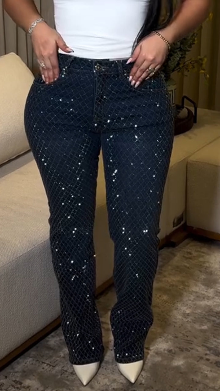 Women's Rhinestone Washed Wide-Leg Jeans with Belt