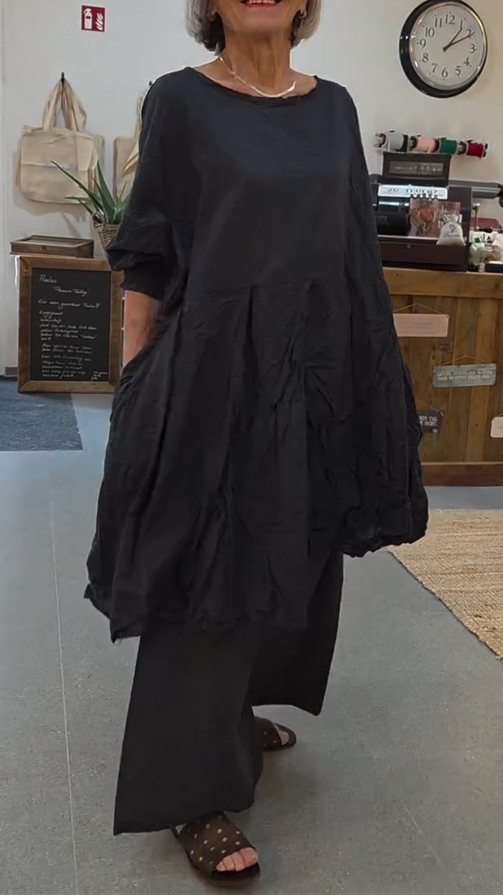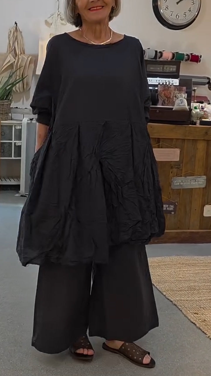 Women Round Neck Solid Color Casual Suit