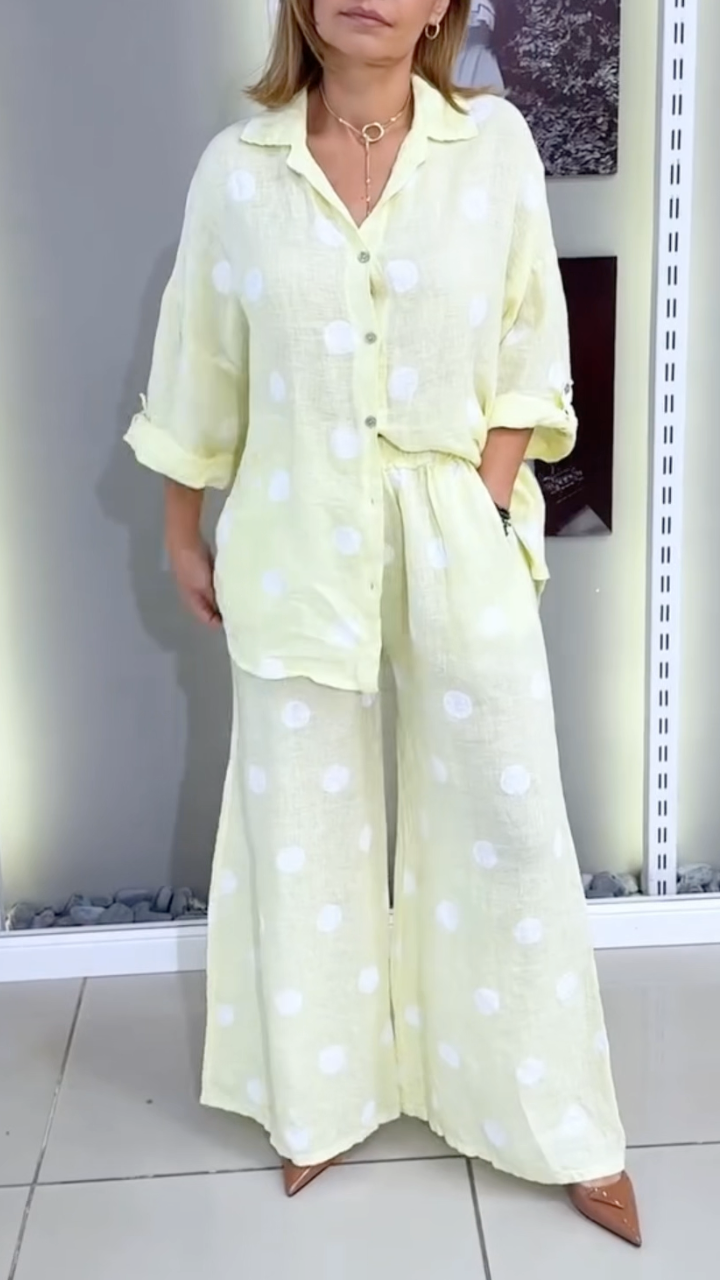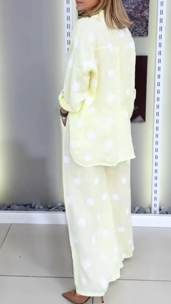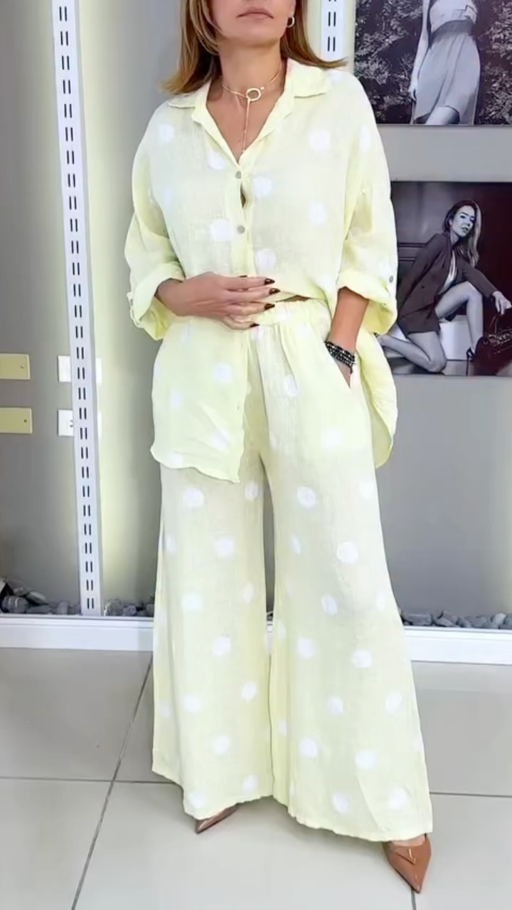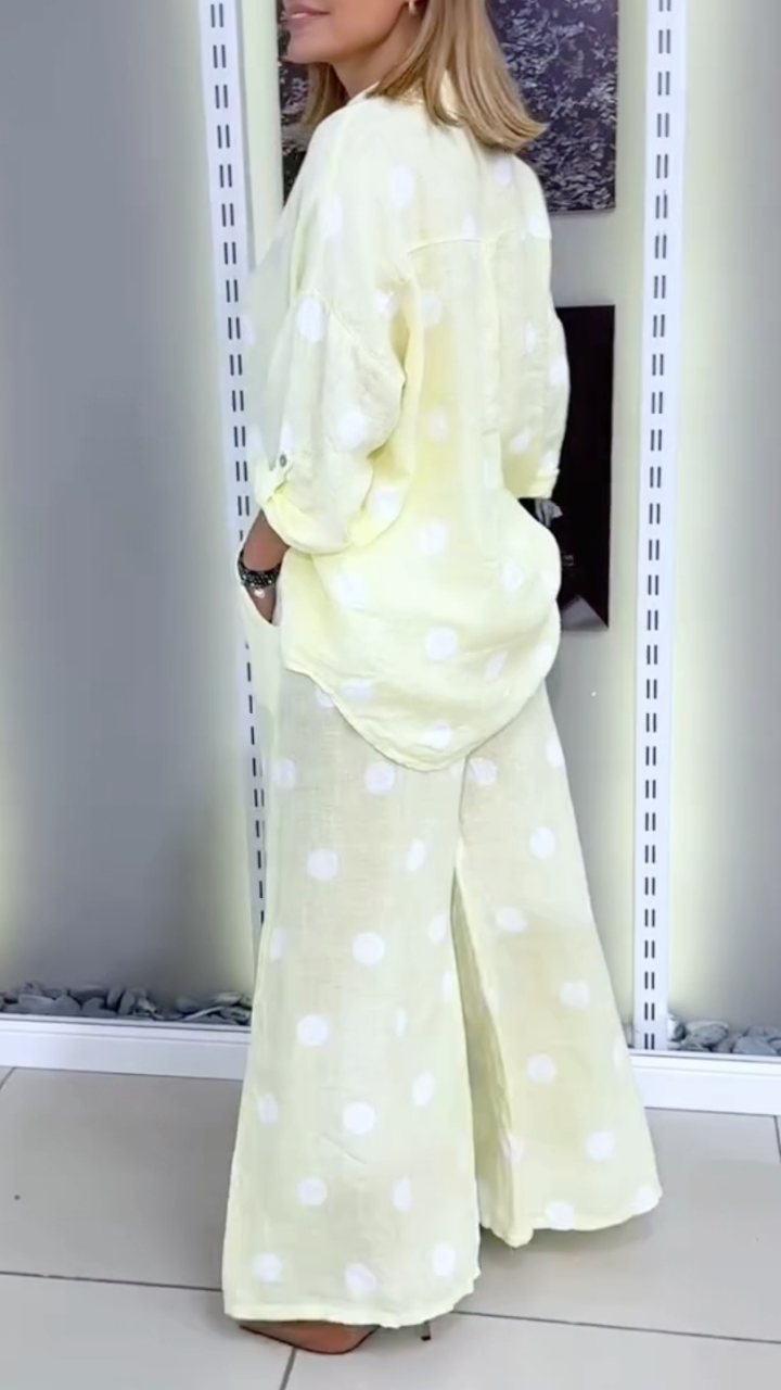 Women V Neck Printed Irregular Long Top+ Pants Casual Suit