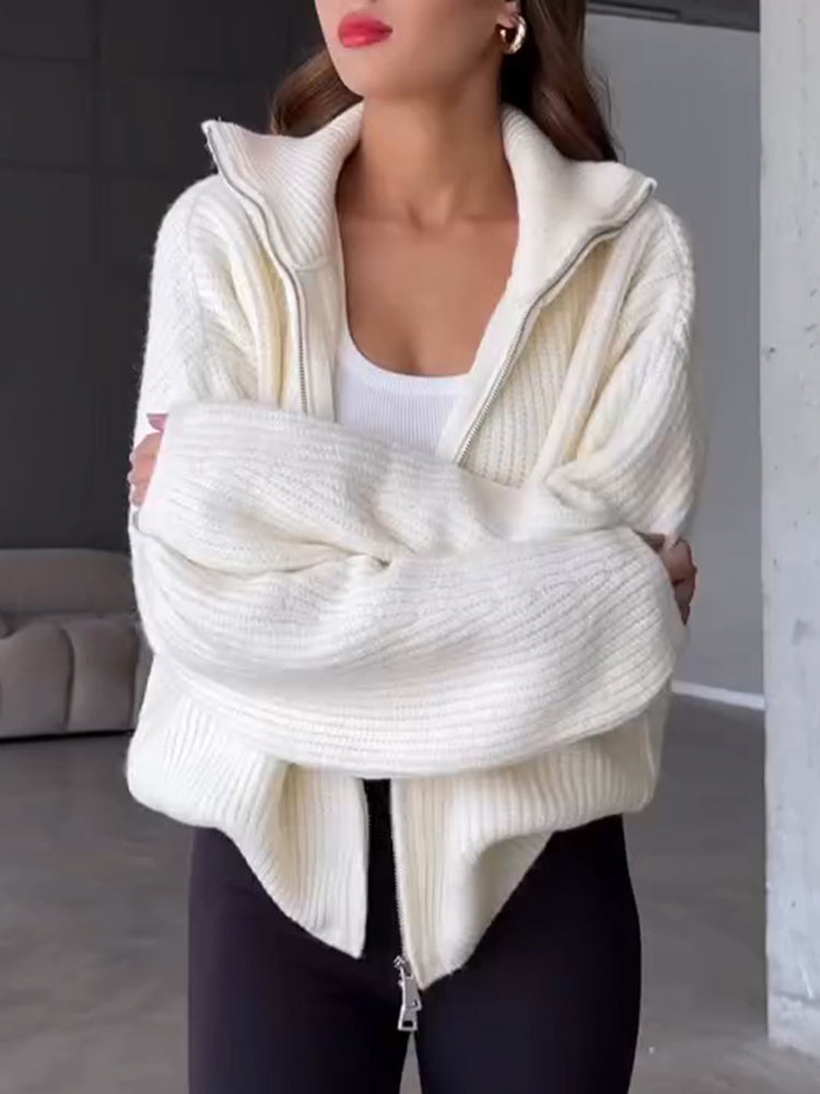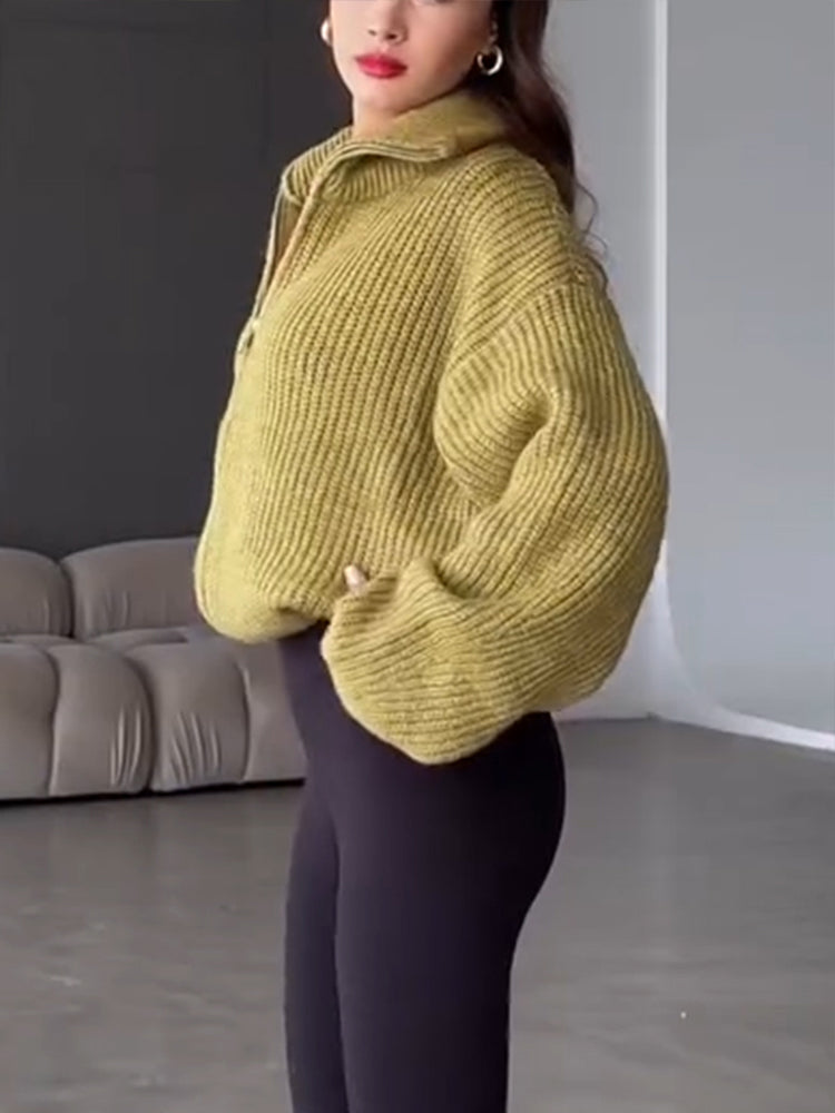 Women's Lapel Button Knitted Sleeve Casual Coat with Two Side Pockets