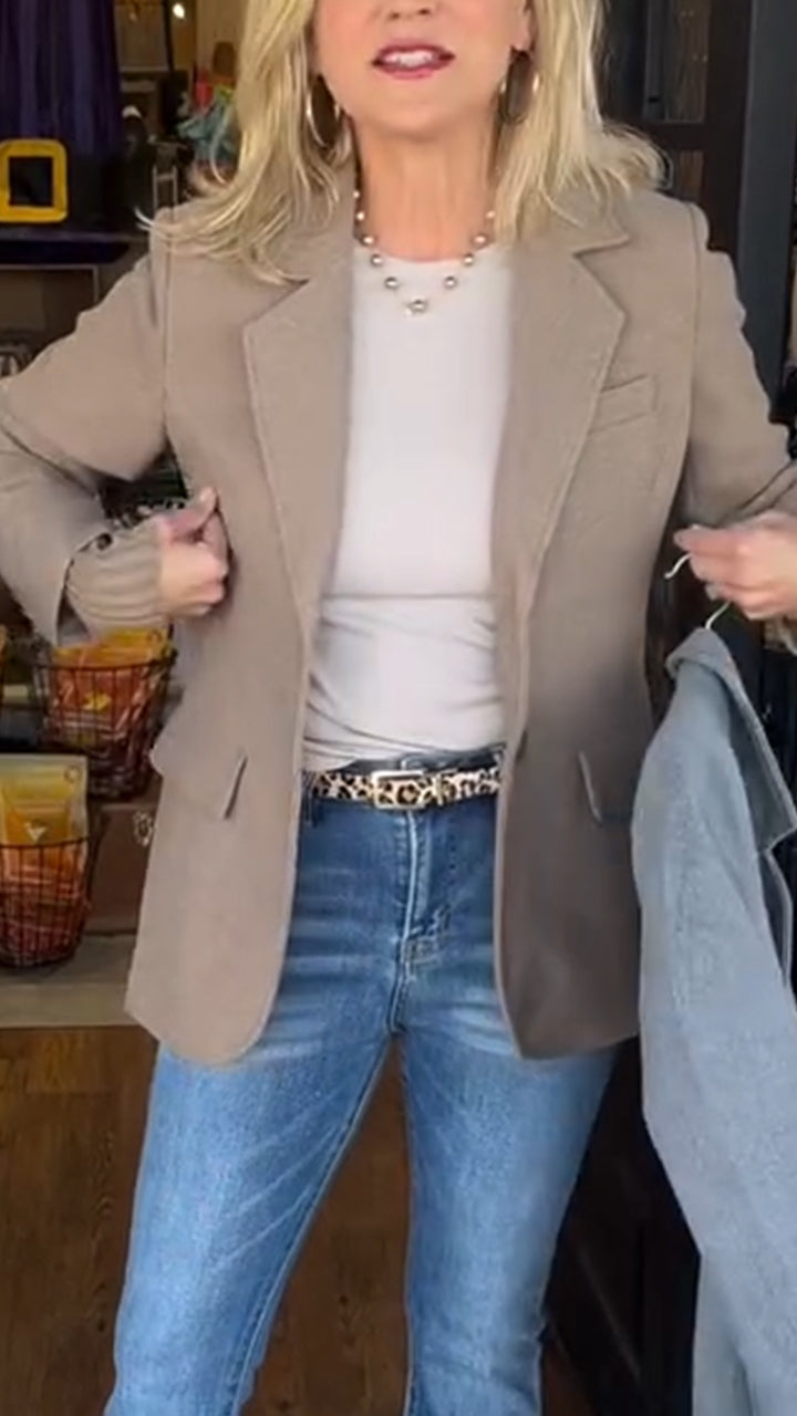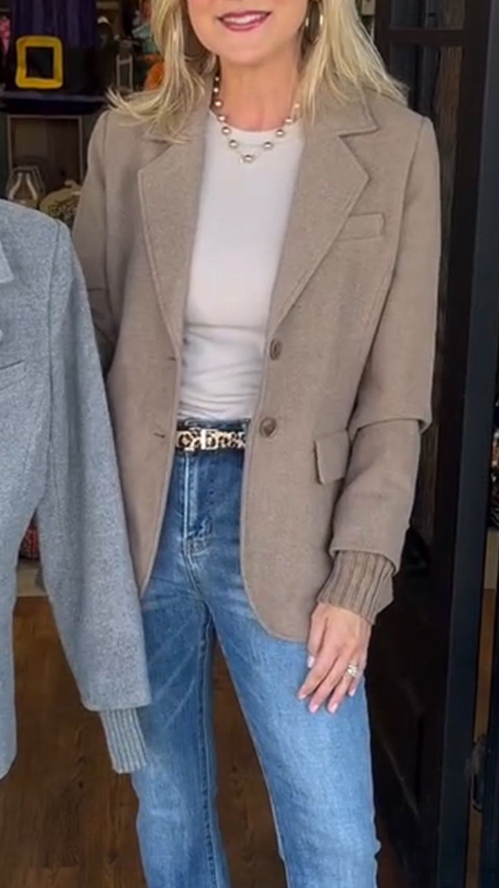 Women's Lapel Button Knitted Sleeve Casual Coat with Two Side Pockets