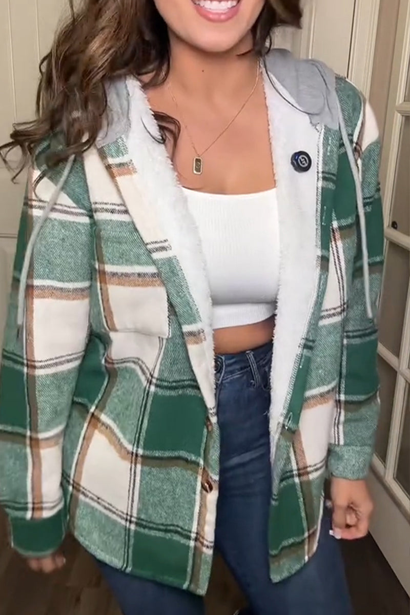 Women Plaid Hooded Fleece-lined Casual Jacket