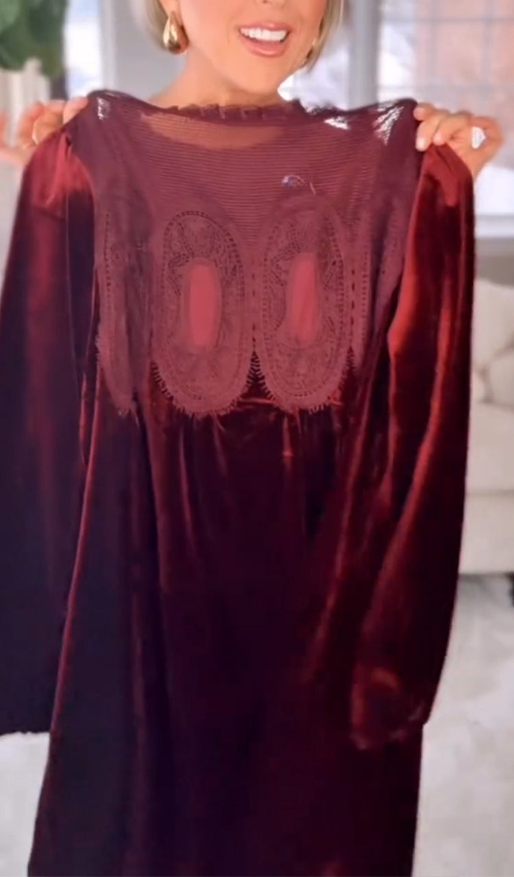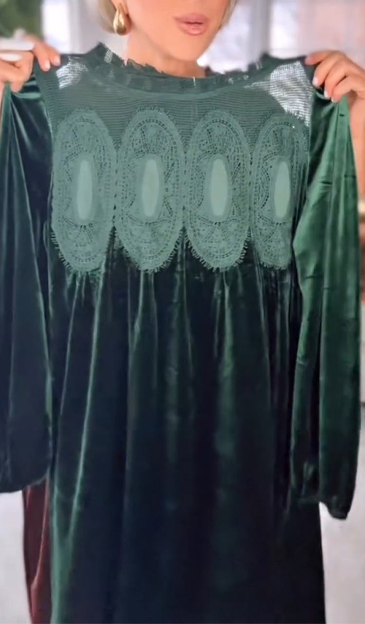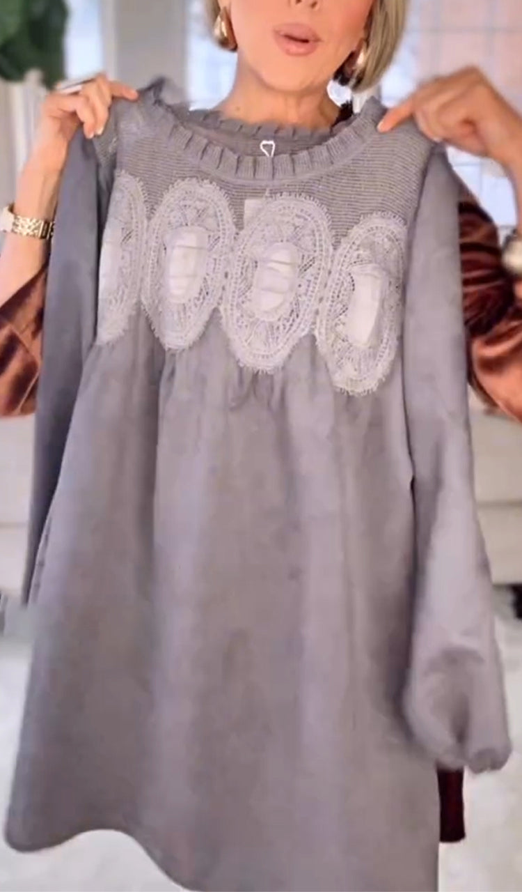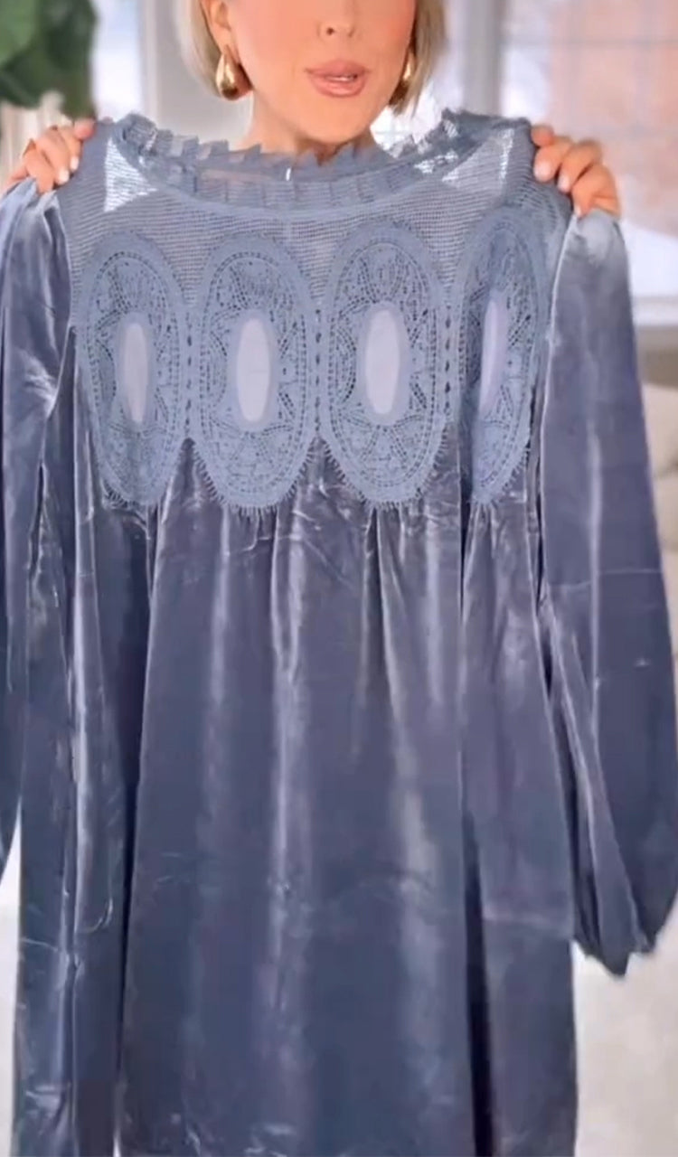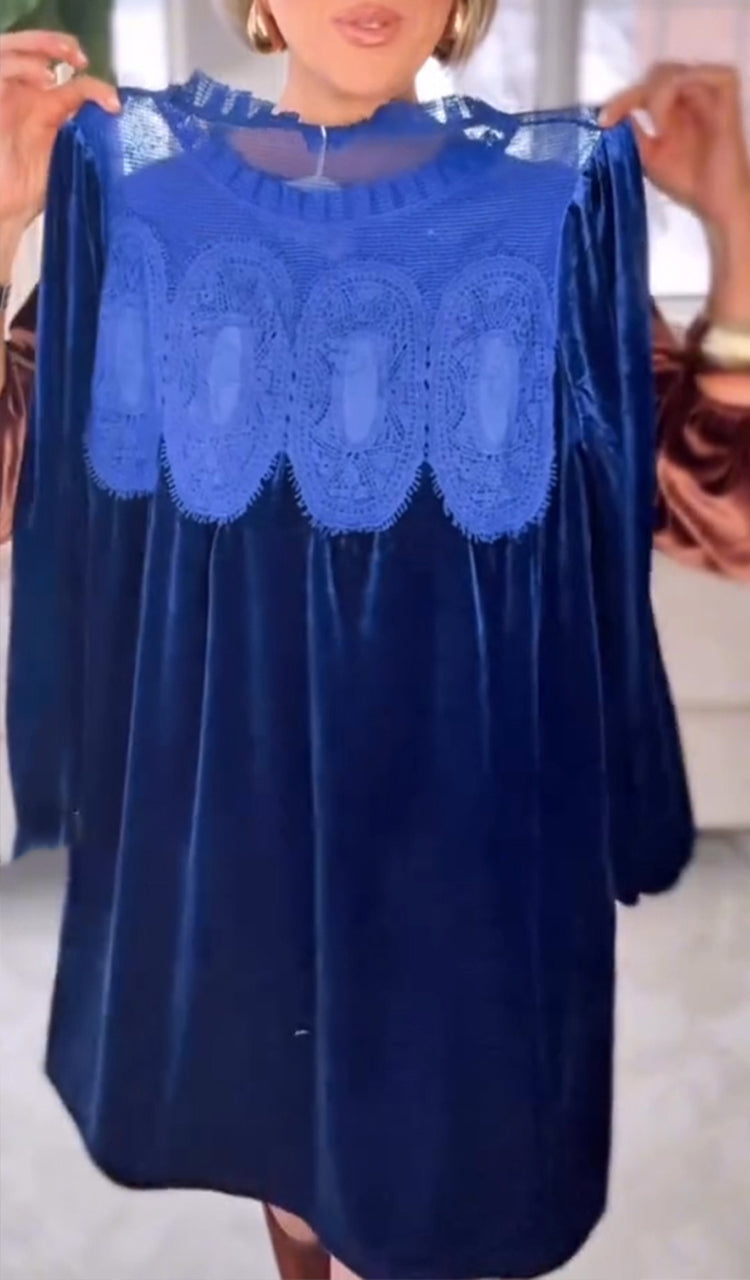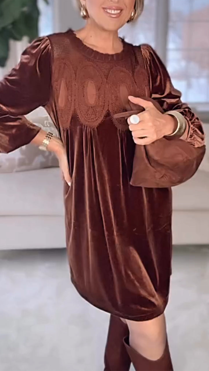 Women Round Neck Patchwork Casual Velvet Dress