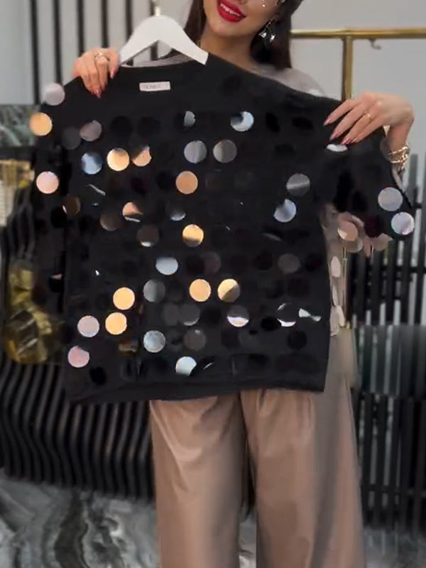 Women Round Neck Sequined Decorative Casual Top