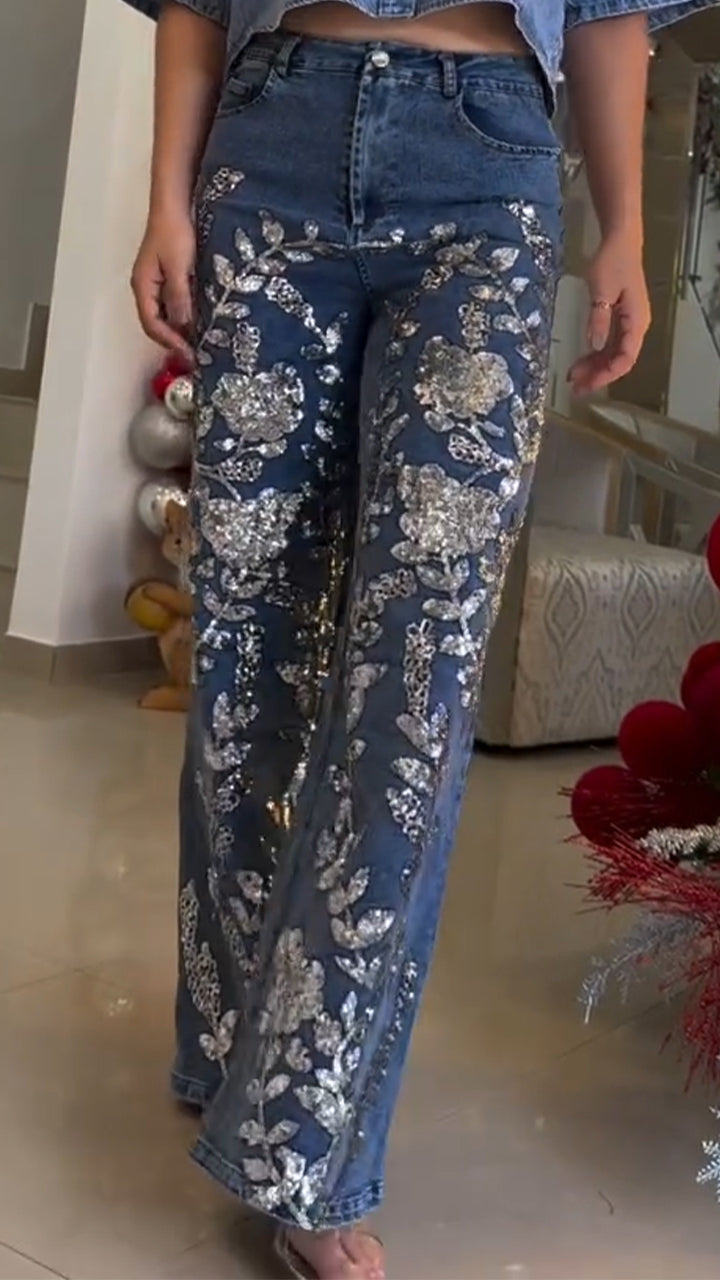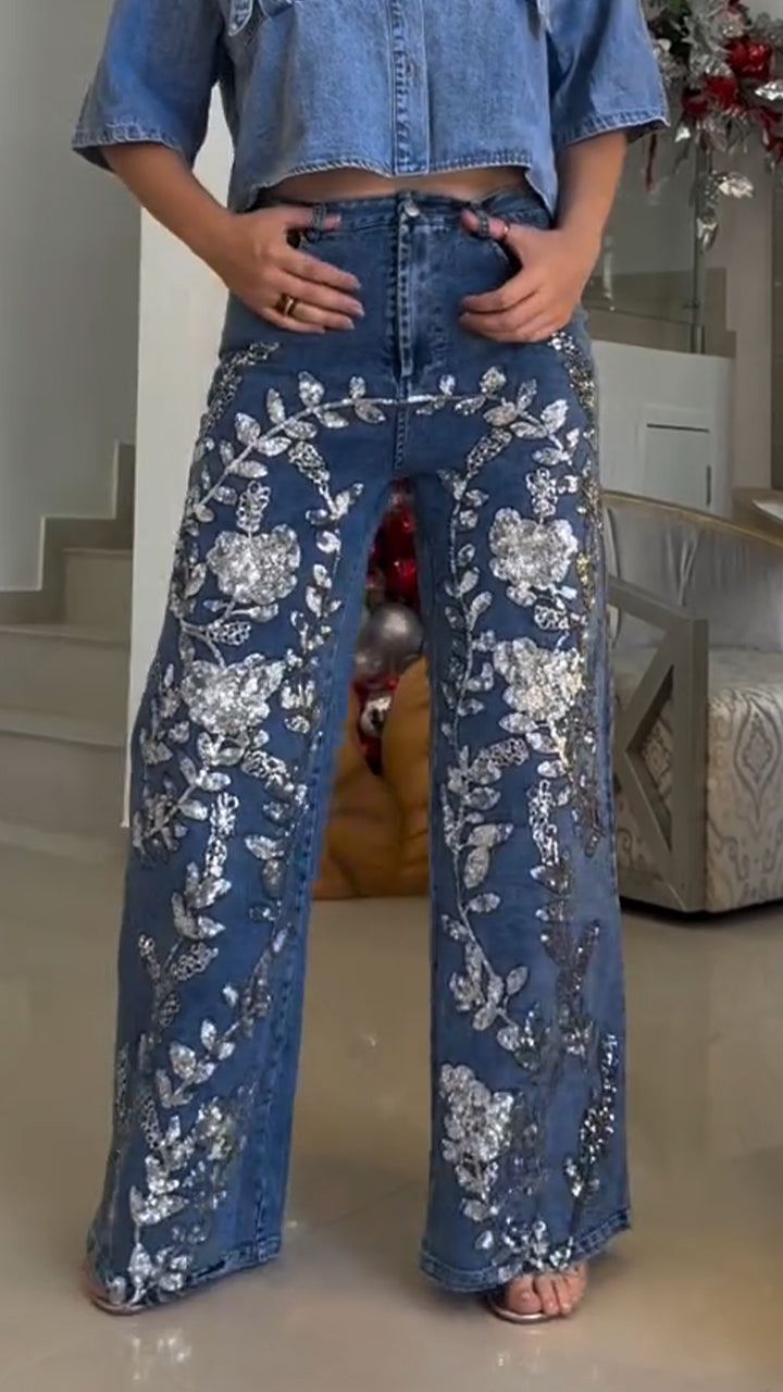 Women's Elegant And Fashionable Diamond Denim Trousers