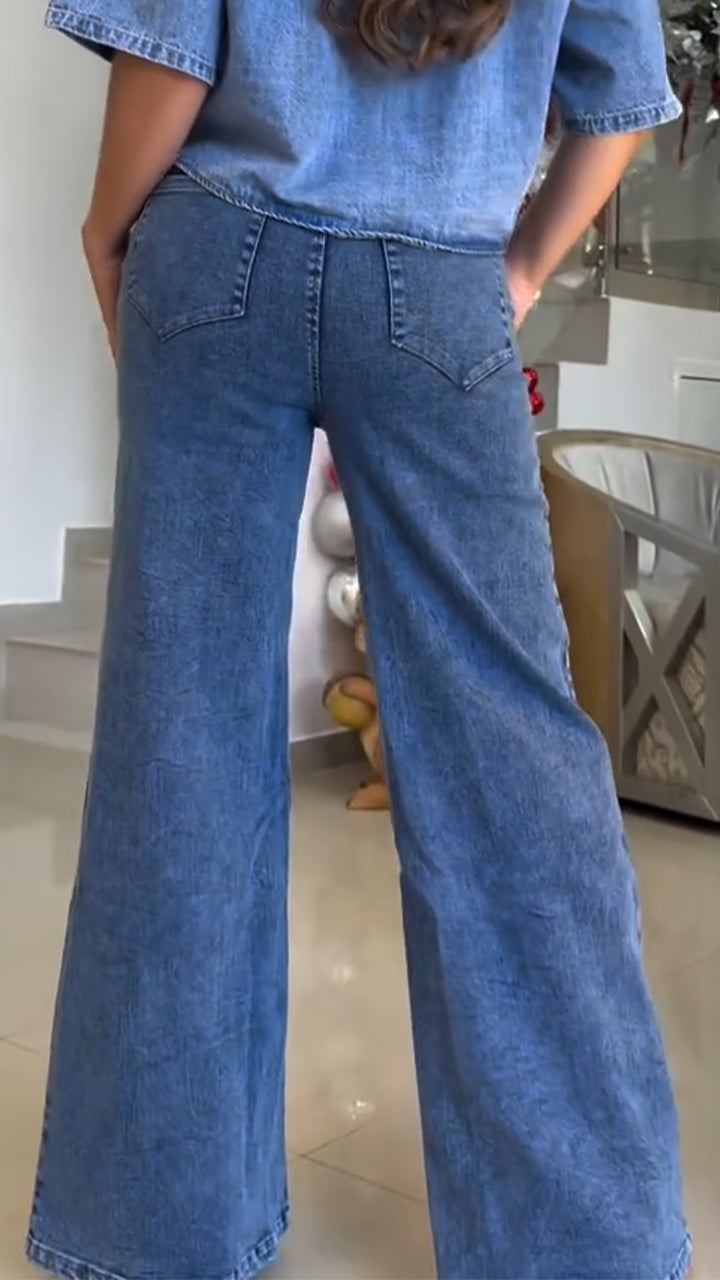 Women's High Waist Slim Wide Leg Pants Loose Mopping Pants Denim Trousers