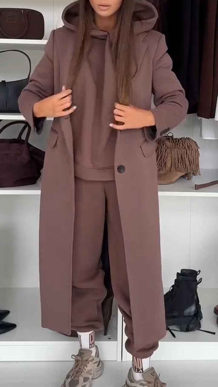 Women's Lapel Button Knitted Sleeve Casual Coat with Two Side Pockets